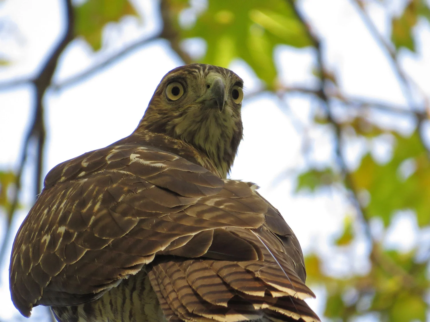 I put together a video that includes both sightings. To me, the Oct. 12 hawk seems more fierce and has darker eyebrows, another reason I think they were two different birds.