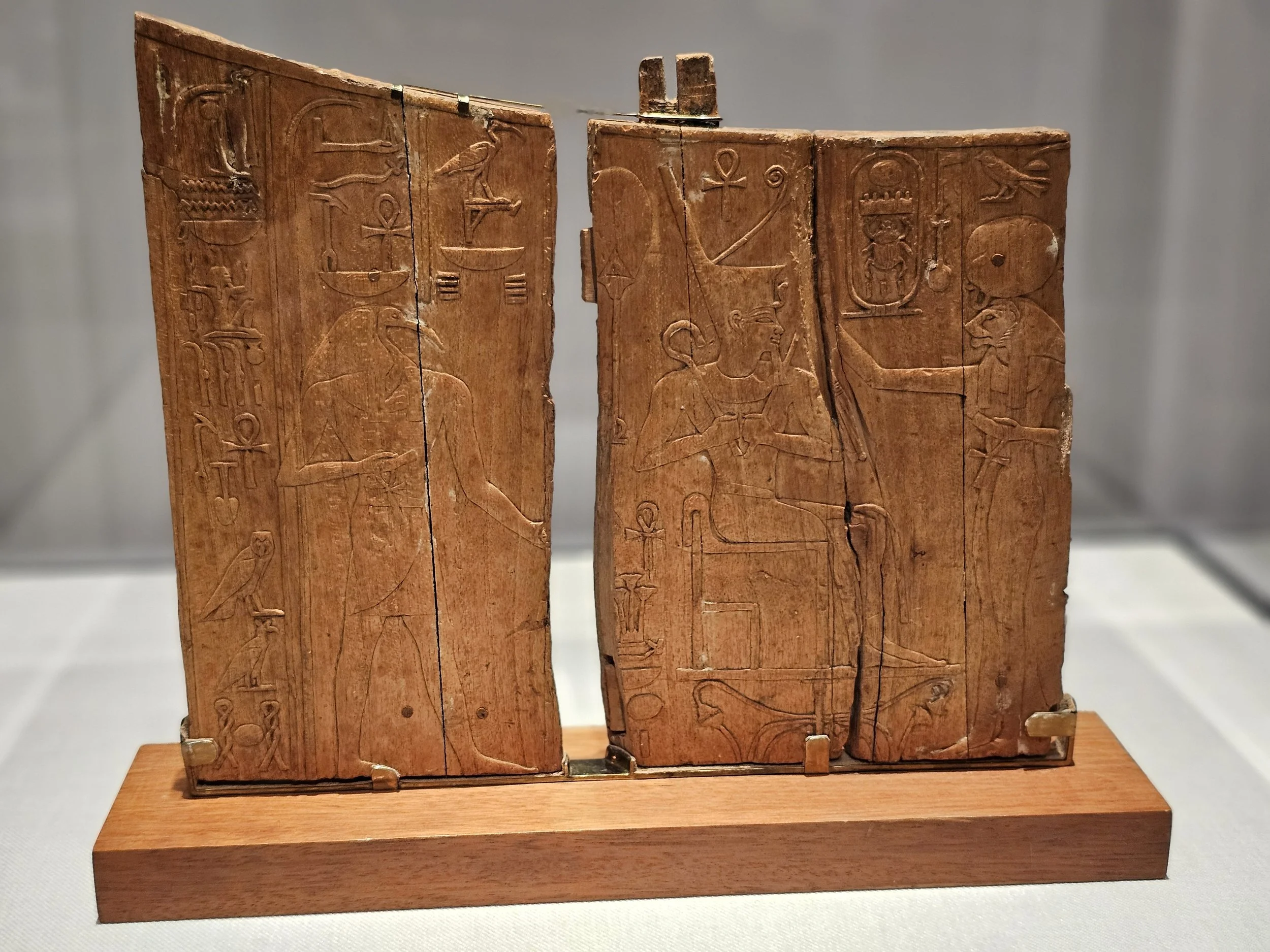 Arm panel from a ceremonial chair showing Thoth standing by Thutmose IV, ca. 1400-1390 BCE