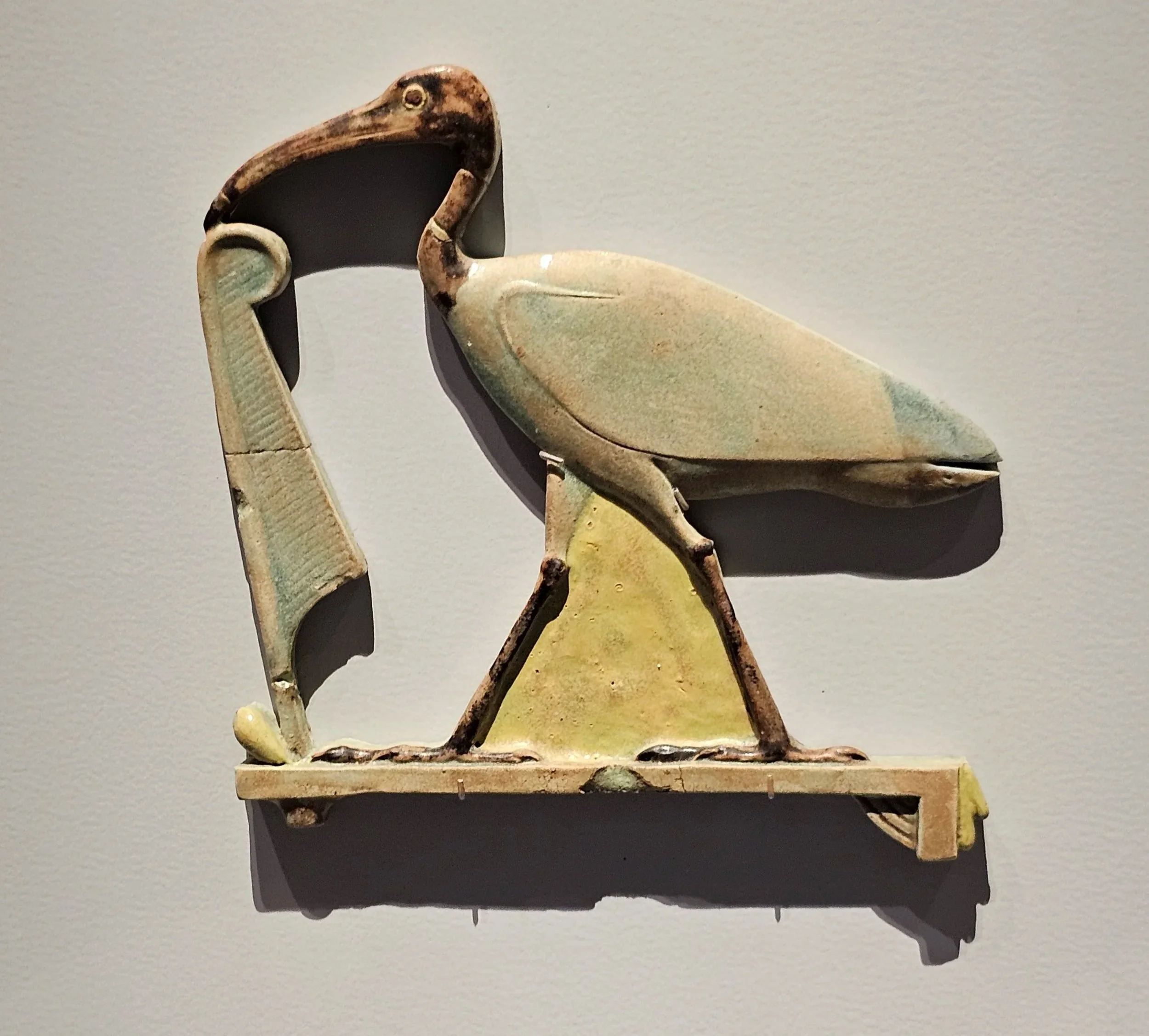 In 2024 and 2025, I had the opportunity to photograph glossy ibises at Jamaica Bay Wildlife Refuge and white ibises on Staten Island. There are 27 extant species of ibises, but most of the ibises we see in the New York City area are glossy ibises and occasional visits from white-faced and white ibises. When I visited the end of Delwit Avenue on Staten Island on August 1, 2025, I was able to see both young white ibises and glossy ibises side by side, and to see how the profiles of these birds so resemble the profiles of the birds depicted in the Met’s displays.