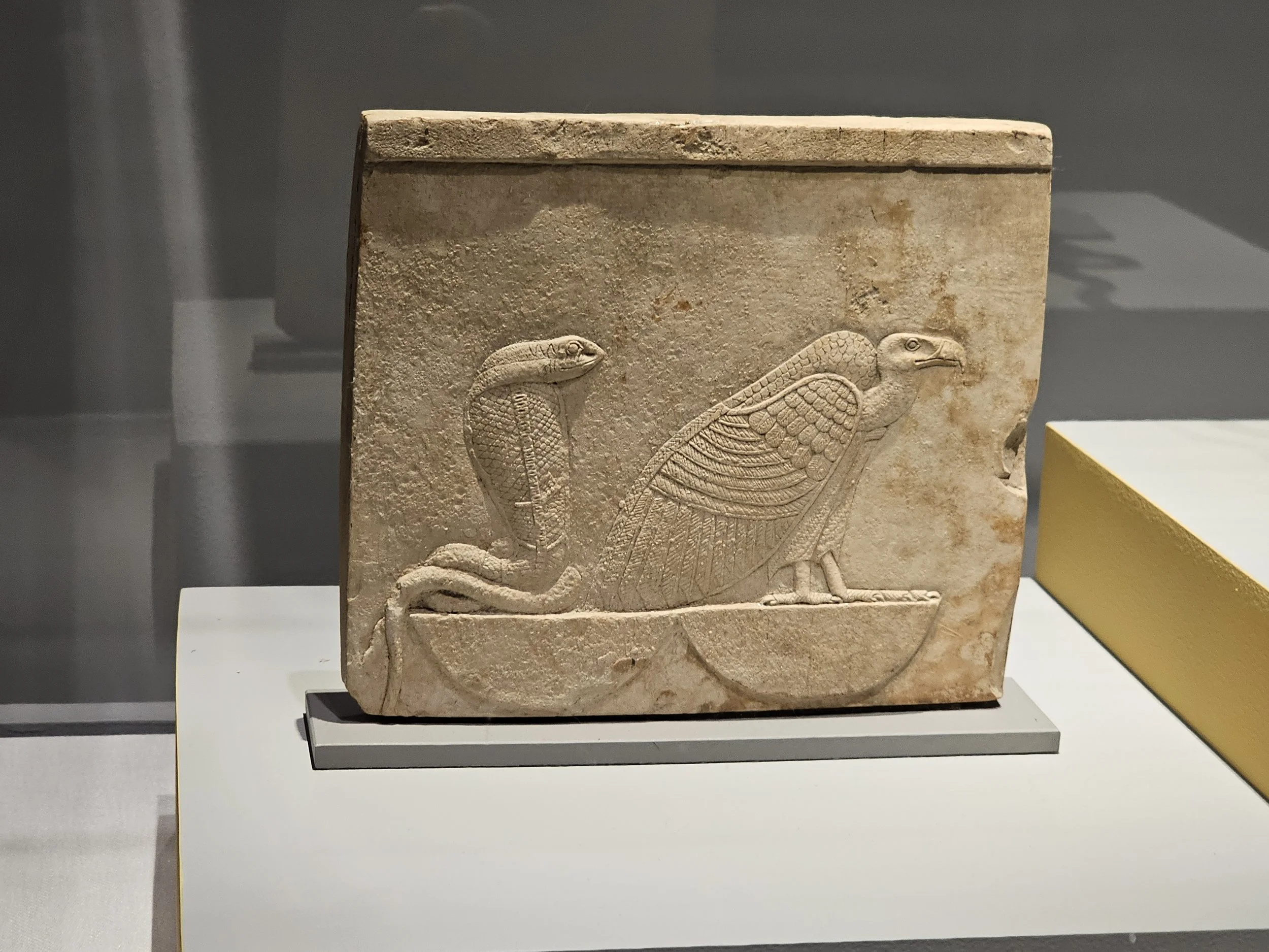 Relief plaque with vulture and cobra on baskets, 400-30 BCE