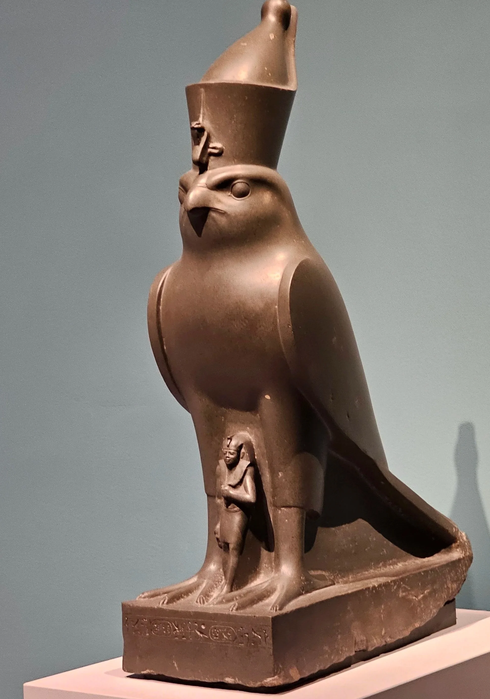 Statue of Horus as a falcon protecting King Nectanebo II, 360-343 BCE