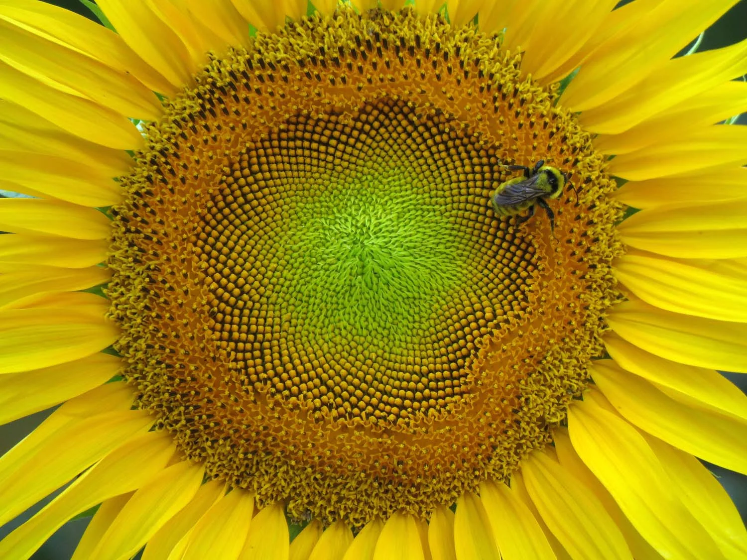 Sunflower and bee, Governors Island on a wickedly hot day, Sept. 5, 2018